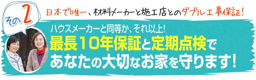 ハウスメーカーと同等か、それ以上の保証制度で、あなたのお家を次回の塗替えまで守ることをお約束いたします。