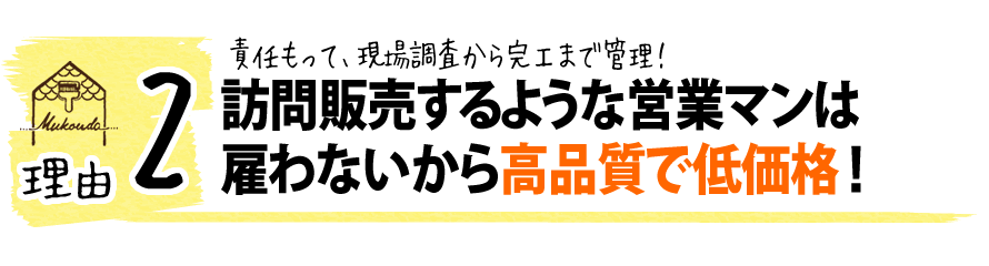 ムコウダでは、このようなことが起こらないように、最初の現地調査から最終の引き渡し確認まで、専属の担当が対応いたします。